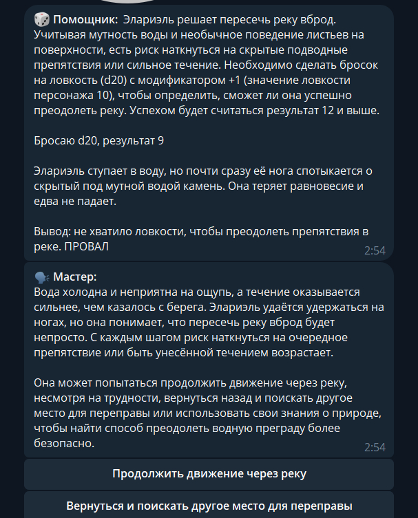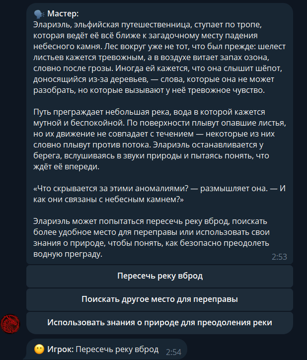 И что-то меня таки дернуло, а не сделать ли бота для телеги, который будет так же выступать мастером, но при этом будет основываться на механиках оригинальной игры? И я таки начал. Был у меня уже опыт создания бота с ИИ в телеге, и почему бы не сделать еще одного.