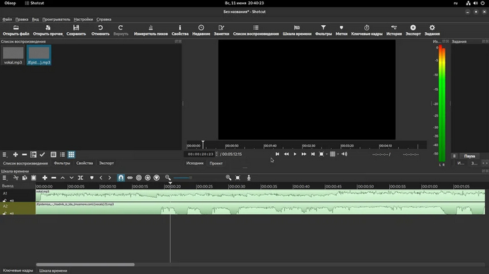 6. Сводим готовы аудиодарожки вокала и инструментала в любом аудио/видео редакторе. Лично я использую для этого бесплатный видеоредактор Shotсut.
