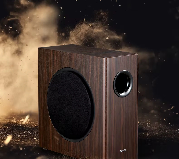 Динамик 8" создаёт глубокий, насыщенный бас, который хорошо ощущается в кино, музыке и играх. Мощность усилителя 70 Вт RMS обеспечивает плотное звучание без искажений, а нижняя граница в 38 Гц придаёт композициям объём. Басы ощущаются мягко, но эффектно — взрывы в фильмах становятся более реалистичными, а ритмичная музыка приобретает энергию.