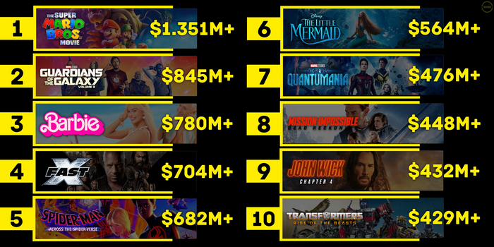 Продолжаем наблюдать за тем, сможет ли «Барби» обогнать «Братьев Супер Марио» и стать самым кассовым фильмом 2023 года.