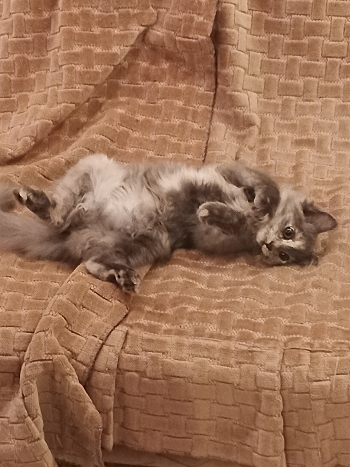 Подобрал с улицы кошечку в сентябре. Через сутки дали имя ей Балтика. Ну потому, что ведет себя так, как будто пару балонов 9 бахнула. Всех любит, ест всё, ест всех. Но обучаема. Стоит выключить свет, тут же падает спать.
