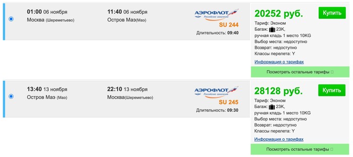 🛫 Туда: 6 ноября, 01:00 → 11:40