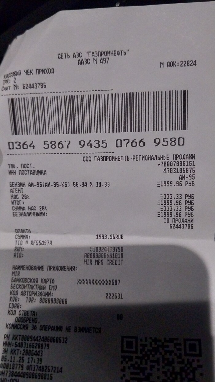 Всем добрый вечер, сталкнулась с таким безобразием. В Новосибирске идут торговые войны АЗС, газпром продает бензин дешевле всех. независимые АЗС, подали жалобу в ФАС. Но суть в другом. На заправке Газпромнефть при вьезде стела, на ней белым по синему цена АИ 95 - 62.82, я подьехала , заправка самообслуживания через терминал, оплатила 2к, вышел чек, а в чеке цена 65.94. Вот жешь ... Вот вопрос : стела является официальным ценником или нет. Больше ни где нет указания какая цена.