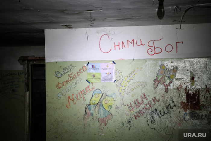 Порой в подвалах шахты пряталось до двухсот человек, большая часть из которых были дети. В 2014 году в убежище побывала донецкий фотограф Ирина Лашкевич, сделавшая серию пронзительных фотографий о том, как дети вынуждены прятаться от непрекращающихся обстрелов. Уже в 2022 году украинские хакеры взломали аккаунт фотографа, украли изображения детей и представили их за юных харьковчан, якобы прятавшихся в бомбоубежищах этой весной. Корреспонденты URA.RU отправились на шахту им. Челюскинцев и своими глазами увидели детские рисунки, зафиксированные Лашкевич и которые до сих пор хранят стены подземелья.