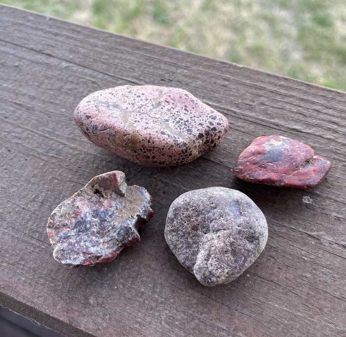 Что скажите? Мне кажется, они прекрасны! Когда не знаешь, что искать на речке, смотри, все яркое и цветастое! С названиями я, как всегда, затрудняюсь. Давайте я назову их яшмоидами, а знатоки помогут в комментариях с более точными определениями. Вот так вот. Ехала за сердоликами на озеро, а нашла такую красоту на речке. Это было и правда неожиданно.