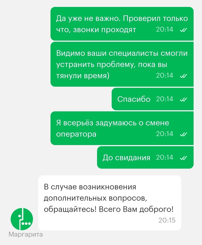 Поддержка Мегафона сначала переводила стрелки на вызывающую сторону, потом ссылались на услугу голосовой почты, потом сослались что идут тех.работы и не могут посмотреть...