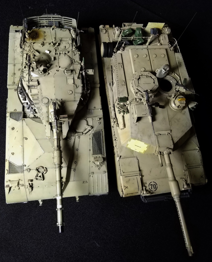 (На фото ниже): M1A2 SEP Abrams рядом с израильским ОБТ Merkava Mk.1. Последний шире и выше по корпусу, однако башня компактнее.