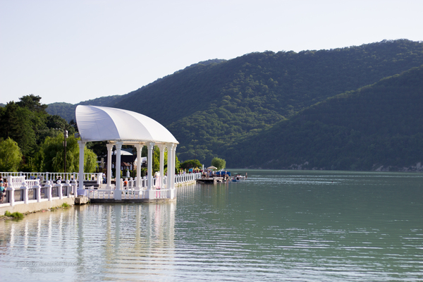 В поселке Абрау-Дюрсо в пригороде Новороссийска 17 октября 2015 года состоялось торжественное открытие огромного фонтана. Семидесятиметровая конструкция фонтана расположилась прямо в озере Абрау, в районе белоснежного амфитеатра на набережной. Canon 6D + Sigma 10-20, 20mm, 10 s, f/8