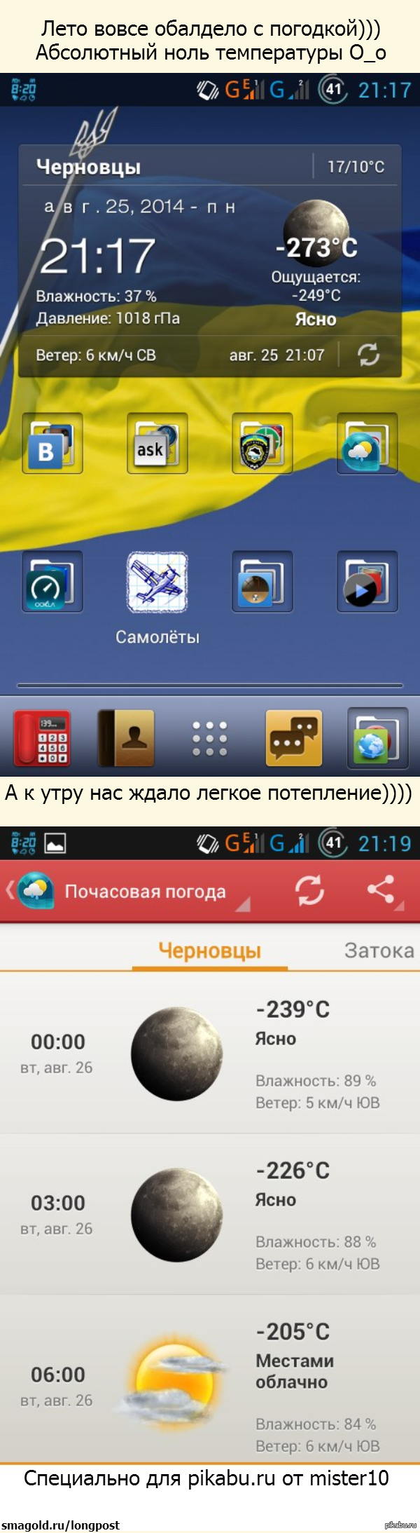 mister10 Абсолютный ноль температуры. К такому меня никто не готовил! 11 лет назад У друга слегка приложение глюк словило)) Показать полностью 1 [моё] Погода Баг Чуток длиннопост Абсолютный ноль Android Длиннопост