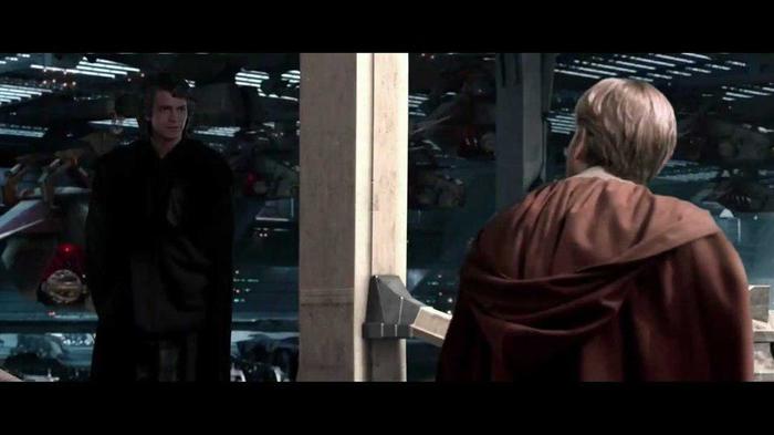 Когда Оби-Ван и Анакин последний раз встречаются как друзья, Скайуокер стоит в тени, Кеноби - на свету, символизируя их сторону Силы.