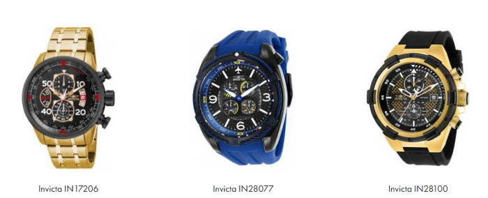 Американская (со швейцарскими корнями) часовая компания выпускает часы самых разных стилей и назначений. Сегодня в фокусе нашего внимания коллекция Invicta Aviator. Стоит заметить, что многие модели в этой коллекции выполнены в довольно авангардном духе, вызывающем некоторые сомнения в их «авиационности». Однако есть и вполне подходящие под это определение образцы. Вот, к примеру, кварцевые (на высокоточном механизме Seiko TMI VD74) часы арт. IN28077: 50-миллиметровый корпус из стали с черным IP-покрытием (практически не бликует), 100-метровая водонепроницаемость, практичный композитный ремешок, фирменное закаленное минеральное стекло Flame Fusion с антибликовым покрытием, абсолютно ясная индикация текущего времени на черном циферблате – ярко-белые (к тому же, покрытые фирменным люминофором Trinite) крупные стрелки, метки и арабские цифры. Замена цифры «12» стилизованным изображением самолета только подчеркивает стиль модели. Нельзя не отметить четыре малых счетчика: секунды, дата, день недели и – внимание – время второго часового пояса (в 24-часовом формате). Остается упомянуть удобную заводную головку в положении «1.30», декоративный тросик на безеле и компасную разметку, окаймляющую циферблат.