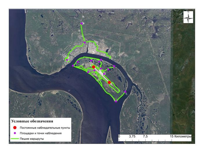 Вот карта с нашими маршрутами точками наблюдения в Игарке