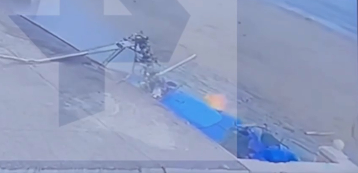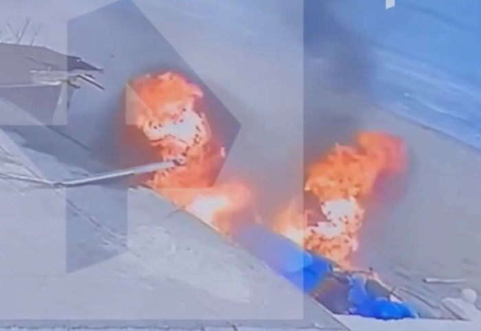 Через 5-7 секунд вертолет уже полностью объят пламенем.