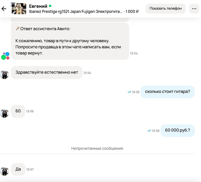 Кто знает, зачем выставлять цену в 1 000, если фактически хочет продать за 60 000?
