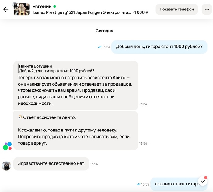 На этом разговор закончился. А через какое-то время моей знакомой влепили негативный отзыв на Авито типа: "Выставляет гитару, хотя утверждает, что полгода назад продала". Знакомая хоть и играла на гитаре много лет, но сразу не смогла домыслить, что под словом инструмент подразумевали именно гитару.
