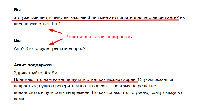 Пишу в поддержку. Думаю, ну окей, бывает, человеческий фактор, сейчас разберутся.