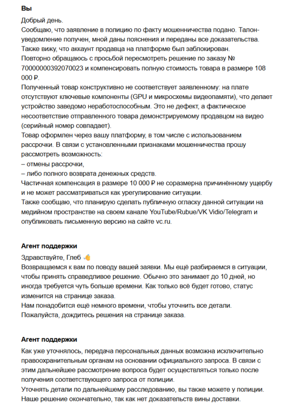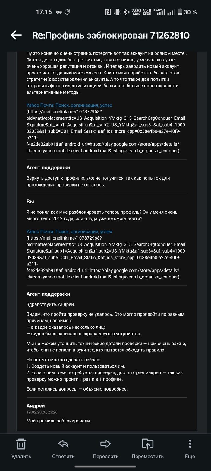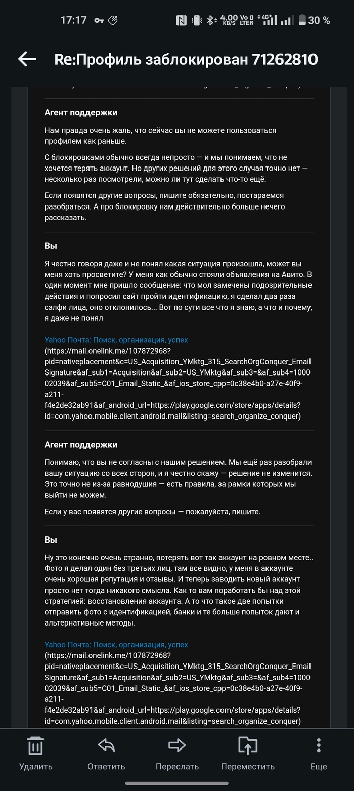 Я честно пытался решить вопрос через официальные каналы. Но в ответ получаю только шаблонные фразы: «Мы все проверили, решение окончательное, аккаунт не восстановим». На просьбы уточнить, что именно я нарушил — тишина.