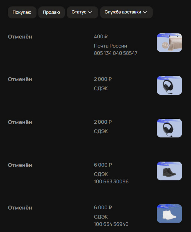 брендовая обувь, электроника, всякости-пакости от 99р (попадались и рили замечательные лоты). жаль, что некоторые топ-товары (айфон 16, к примеру) - элементарно кликбейтные картинки-затычки, завлекающие наивных нас в этот шопоголический ад. да даже судя по отзывам в профиле "хватамбы" - что-то действительно дорогое (rtx 3070, к примеру) лишь у нескольких человек, да и то, у некоторых из них отзыв красуется в категории "сделка сорвалась". а вот у меня, к слову, не сорвалась. кое-какие сделки все-таки заключились, но были разорваны в одностороннем порядке (на-ду-ли)