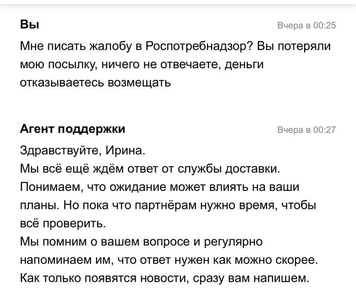 Обещали все возместить, а в итоге кормят шаблонами и игнором на несколько дней. Сколько раз пользовалась доставкой никогда проблем не было, а теперь уже и не знаю куда писать, что вернуть свои деньги и посылку.