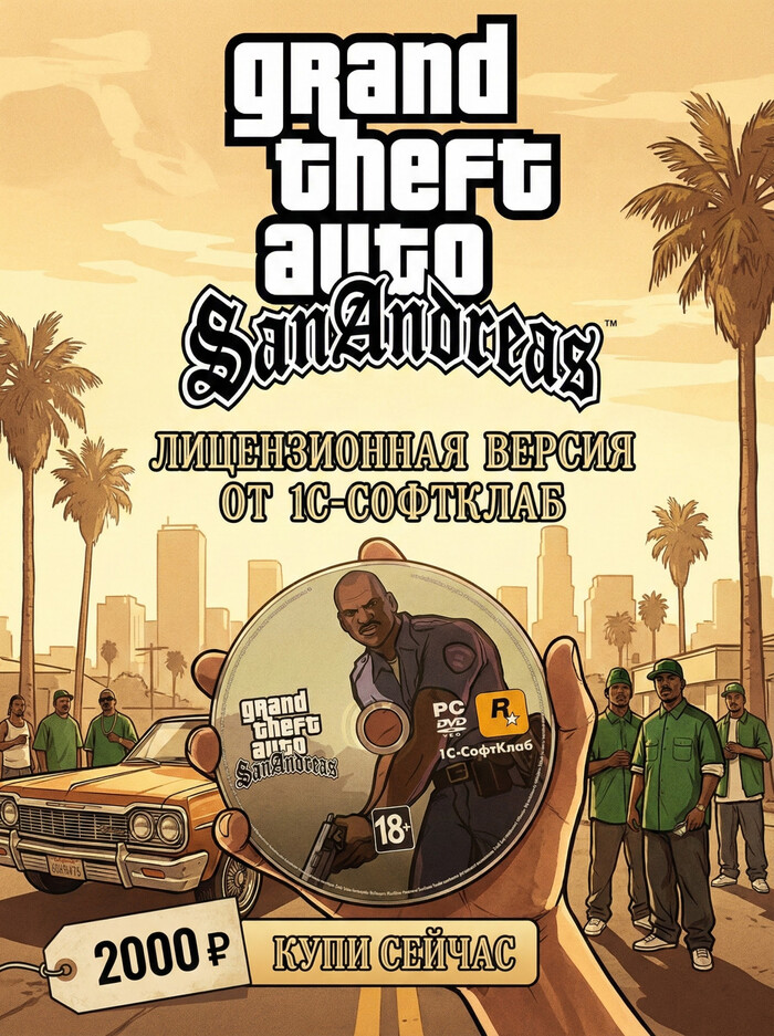 Идея (промпт в боте): Рекламный постер и объявление для товара в стиле GTA San Andreas