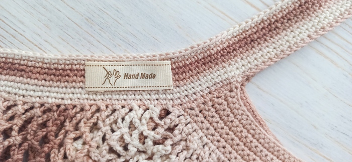 Связана из пряжи 100% хлопок. Размеры определить проблематично, т.к. она тянется и т.д.