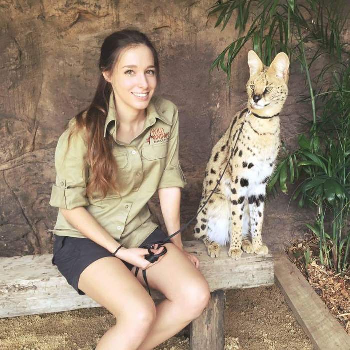 Kahlia Britton. Она ухаживает за дикими котами в Wild Cat Conservation Centre (заповедник в Австралии)