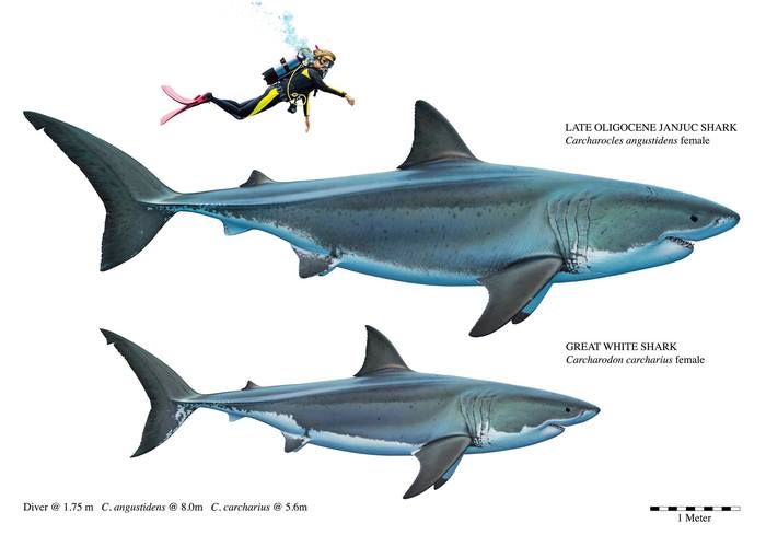 По результатам исследования выяснилось, что несколько зубов небольшого размера «потеряла» шестижаберная акула из рода Hexanchus — эти животные существуют и до сих пор. Остальные зубы (семь сантиметров в длину) принадлежали вымершему виду Carcharocles angustidens. Эта хищная рыба достигала девяти метров в длину, что в два раза превышает размеры современной большой белой акулы, однако меньше другого ископаемого представителя рода Carcharocles — 15-метрового мегалодона.Доисторическое животное обитало в водах Австралии около 25 млн лет назад, и в этой акватории его зубы найдены впервые. Большинство известных до сих пор образцов — единичные, и несколько зубов вместе удается найти крайне редко.