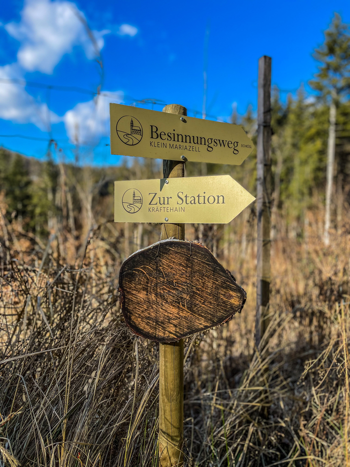 Пошли по той же синей метке, и в этот раз указатели нас не подвели. Встретили маму с маленькой дочкой, которые отдыхали на лавке, вырубленной прямо в скале. Впервые вижу таких крошечных детей на сложных тропах. Спуск занял около полутора часов, и мы успели на наш прямой поезд до Вены. Подъём вышел крутым, но этим стрелочкам точно не помешало бы пару доработок!