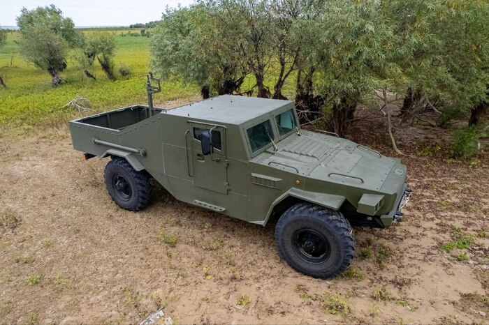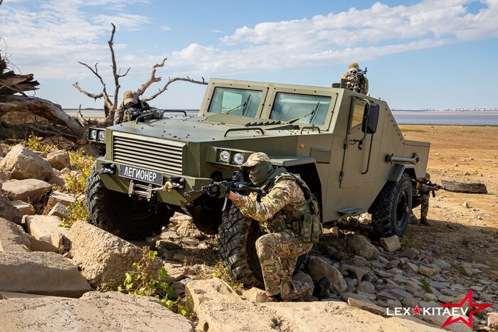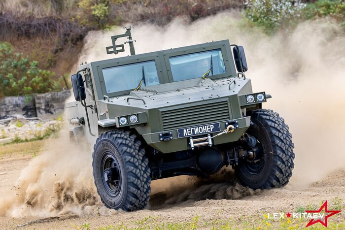 Бронированный пикап "Легионер" ТТХ : Класс защиты: БР 5. Масса 6,5 тонны. Грузоподъёмность 2,5 тонны. Максимальная скорость 100 км /ч. Запас хода 750 км. Двигатель ЯМЗ 534 мощностью 200 л/с.