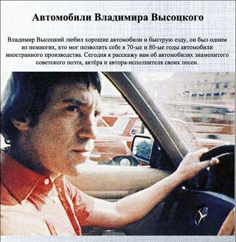 «Mercedes как у Высоцкого» — именно под таким именем нарицательным в нашей стране получил известность S-класс первого поколения с кузовным индексом W116, поскольку великий советский бард и актер Владимир Высоцкий был одним из первых в СССР обладателей этого автомобиля. При этом Владимир Семенович, как и любой мужчина, очень любил машины и технику, а легендарный «синий Мерседес» был не первым, и далеко не единственным его автомобилем.