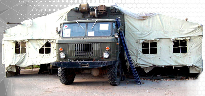 В специальных закрытых фургонах размещалось оборудование обновленной азото- и кислорододобывающей станции АКДС-70М2, состоявшей из технологической и компрессорной машины с кузовами длиной около 10 метров, вспомогательных грузовиков и автономной электростанции в 200 киловатт на прицепе МАЗ-5224В.