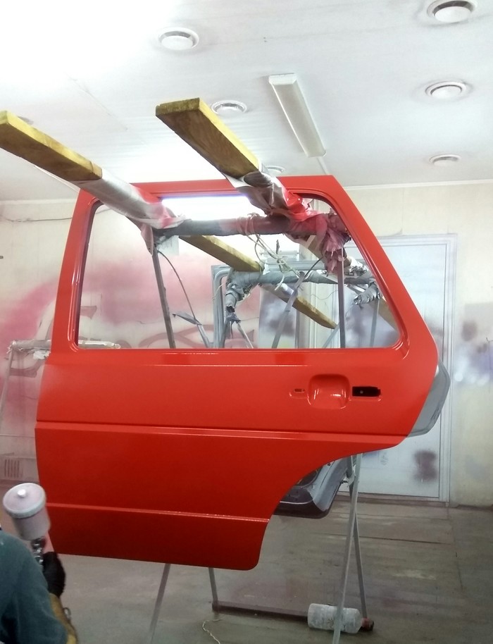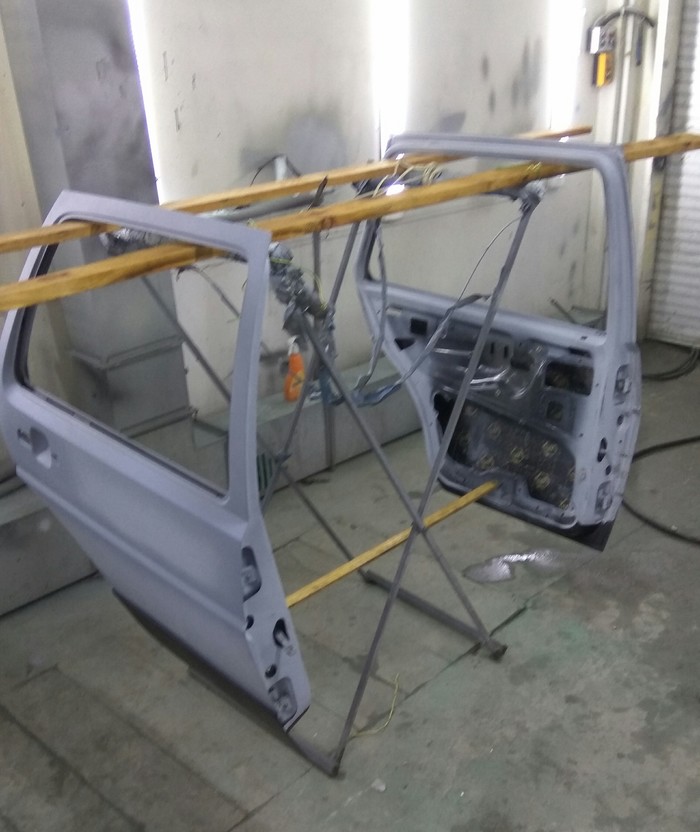 Обработали нижнюю (до ребра) часть двери антигравием, предварительно разбавим лля уменьшения шагрени.