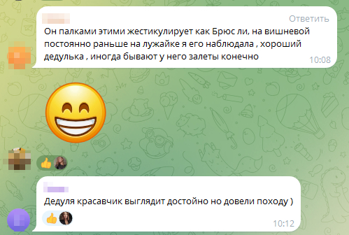 На одной из остановок останавливается автобус и из него выходит сначала дедушка с клюкой 70-80 лет и тихонечко движется от автобуса, а через несколько секунд готовится выйти бабушка того же возраста (при этом скорее всего они не знакомы друг с другом).