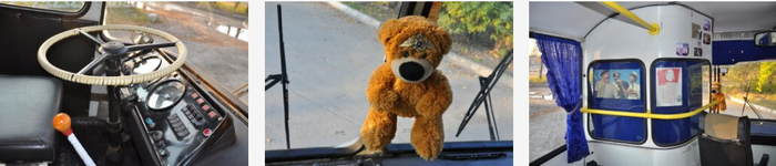 Разумеется, для окончательного соответствия «автобусу детства» были найдены и размещены у водительского места пропуска тех времен, билеты и фотографии. А также специально заказана и прикреплена табличка маршрута, какая применялась тогда. В этой связи даже был случай: остановили как-то «гаишники», мол, если не на маршруте, табличку надо снять. Объяснил, что невозможно, это музейный экспонат, они осмотрели все, прониклись и отпустили с миром.