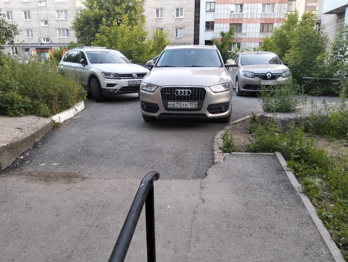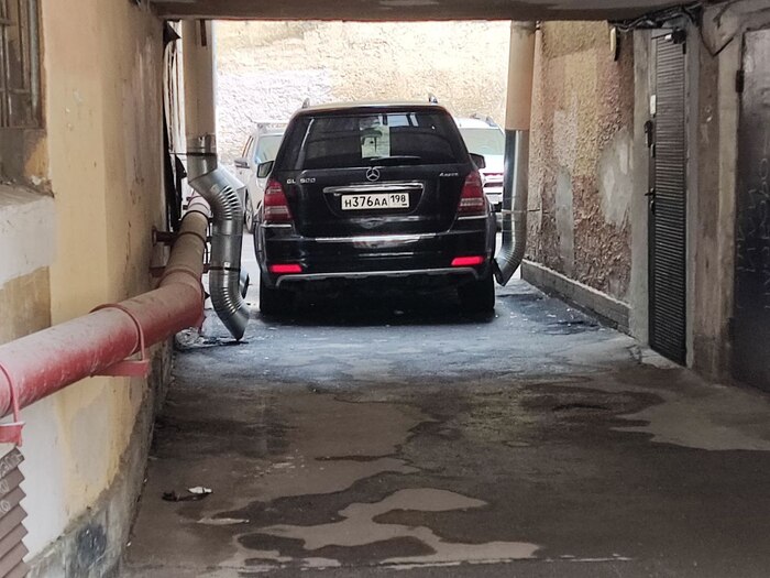Гулял в обед по Васильевскому острову и встретил такое чудо. Тип просто заблокировал сквозной проход через двор колодец.