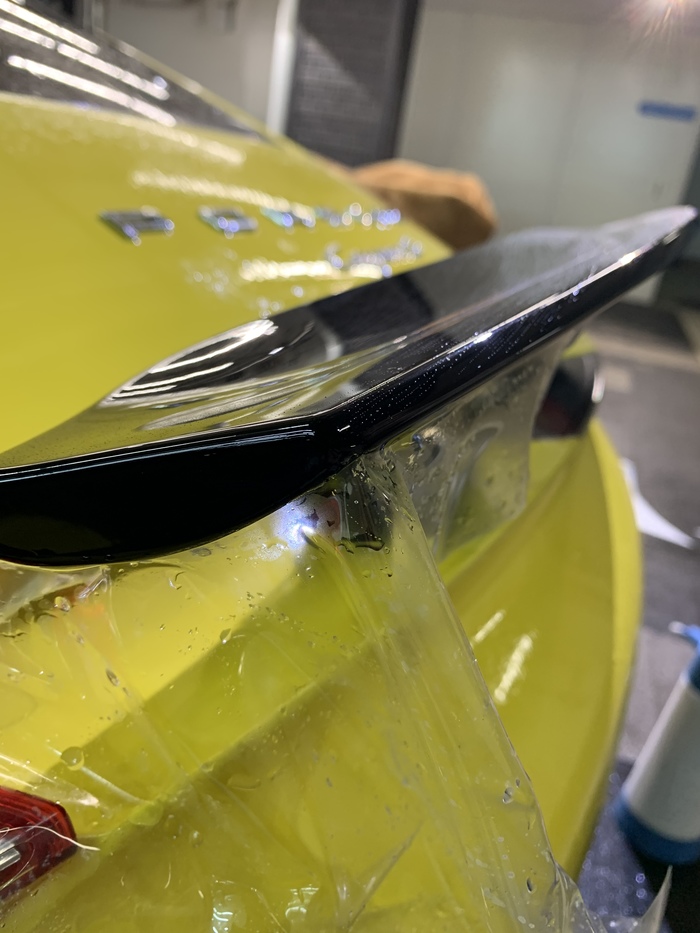 Бампера мы делаем "вставочным" методом, закладывая с отдельным кусков сложные места. Пленка в таких местах стыкуется в нахлест, ровными резами и дополнительно усиливается праймером, чтобы не было неприятных происшествий на мойках высокого давления.