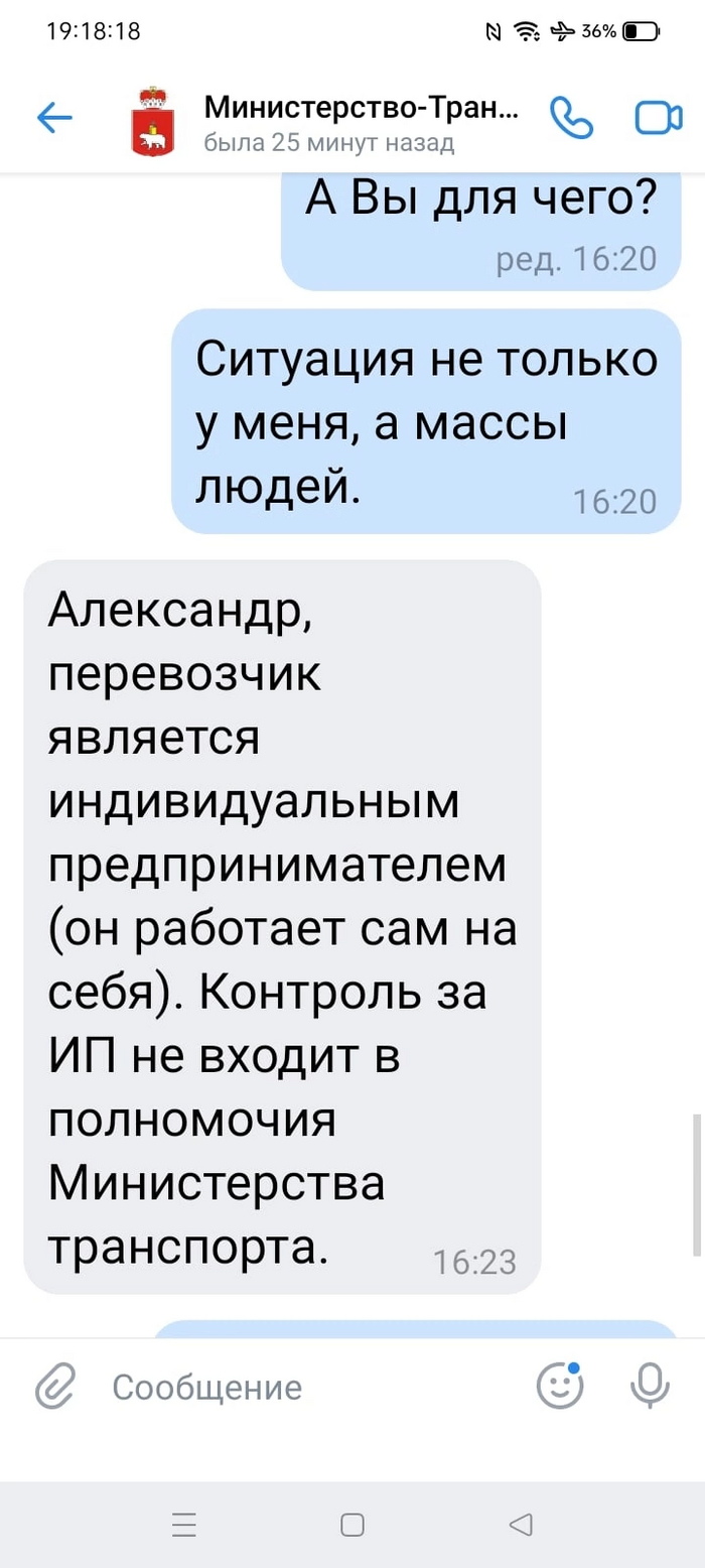 Оказывается и контроль за перевозчиками не в компетенции министерства, и вообще ООО это ИП 😂😂😂, а раз перевозчик ИП, то он работает сам на себя и министерство его не контролирует.