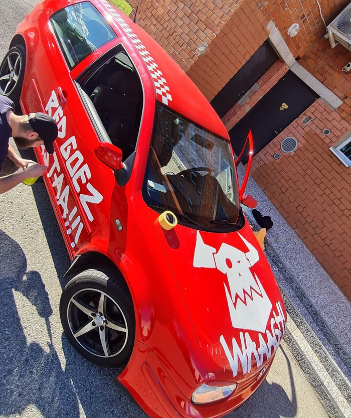 К гонке сбацали наклейки с именами варбойзов на стекло