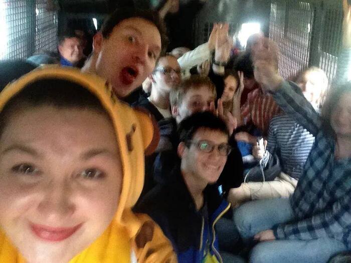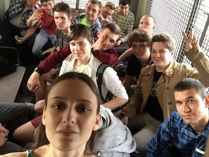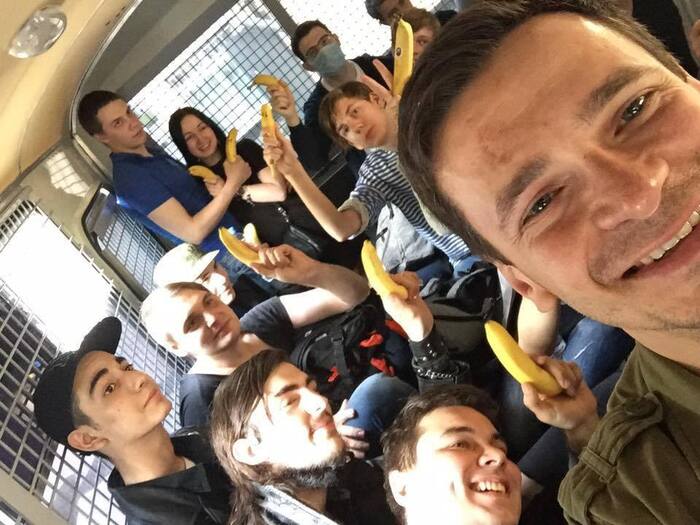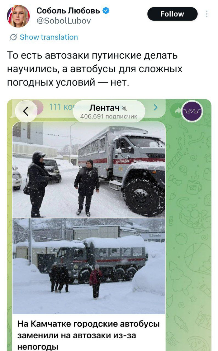 Стоит вот такой прекрасный "лимузин" на Проспекте Мира. Автозак длиннющий, а его прицепили к пикапу. Митингов нет, протестующих нет.