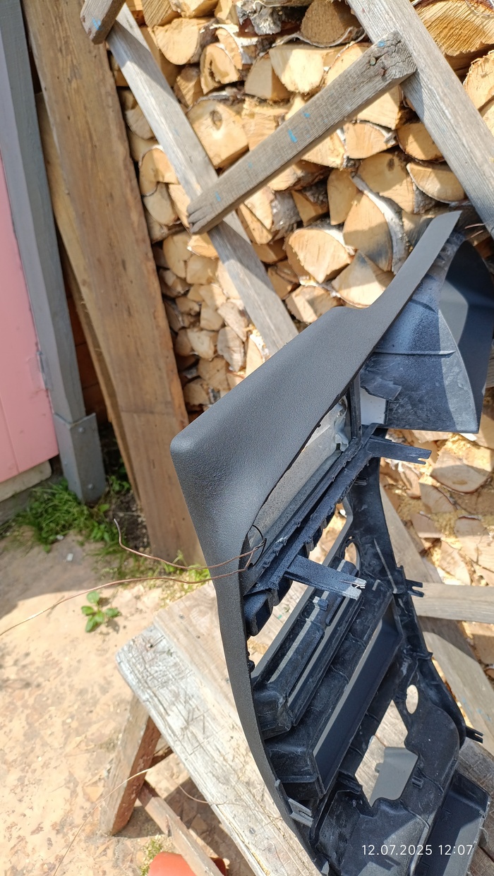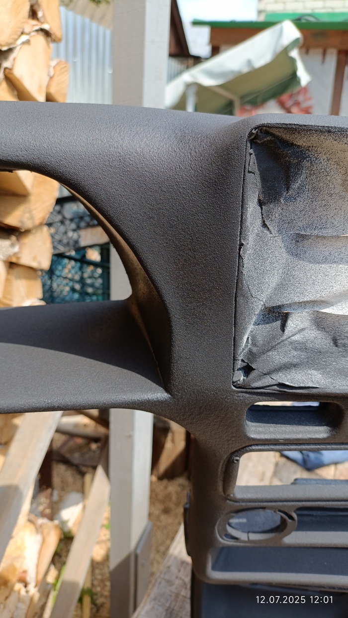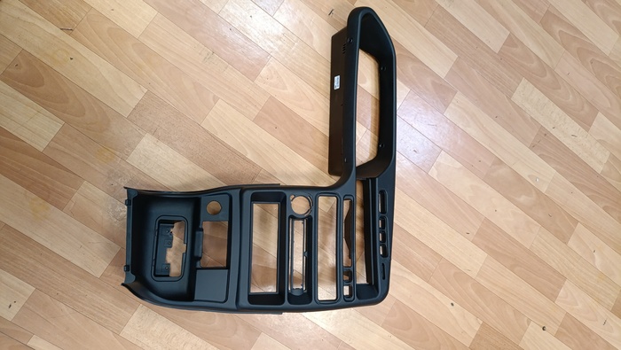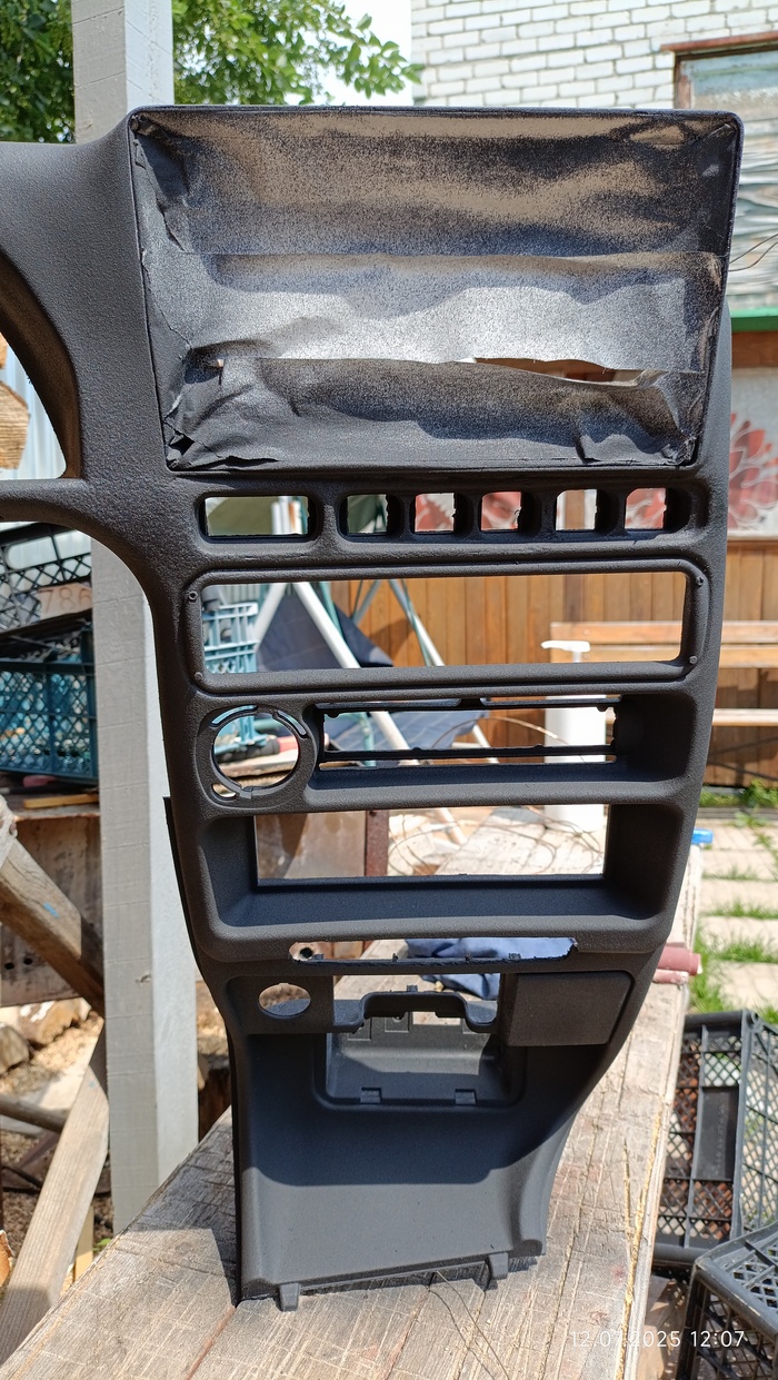 Загрунтовал и покрасил все структурной краской. Краска дала текстуру и практически скрыла косяки на переходах. Сверху кинул бамперной краски. Слишком матовая была поверхность. Забыл упомянуть БСК. Сделал прорезь под штатным местом для магнитолы, и туда вклеил на термоклей сам БСК.