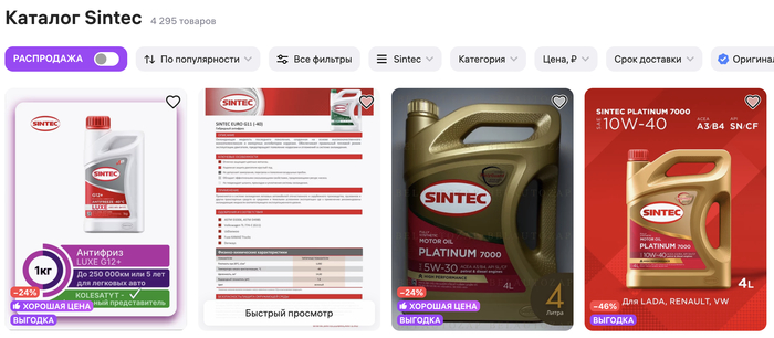 Wildberries представляет продукцию бренда SINTEC, одного из ведущих производителей моторных масел в России. На платформе доступен широкий ассортимент масел, включая синтетические, полусинтетические и минеральные варианты, подходящие для различных типов двигателей.