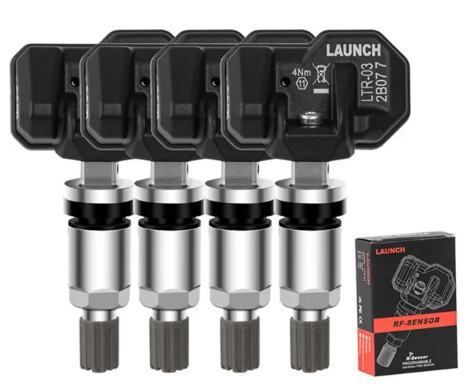 Датчик давления в шинах LAUNCH X431 формата 2 в 1 предназначен для работы с частотами 315 и 433 МГц, что расширяет совместимость с автомобилями разных марок. Устройство используется для диагностики, тестирования и программирования системы TPMS при обслуживании шин.