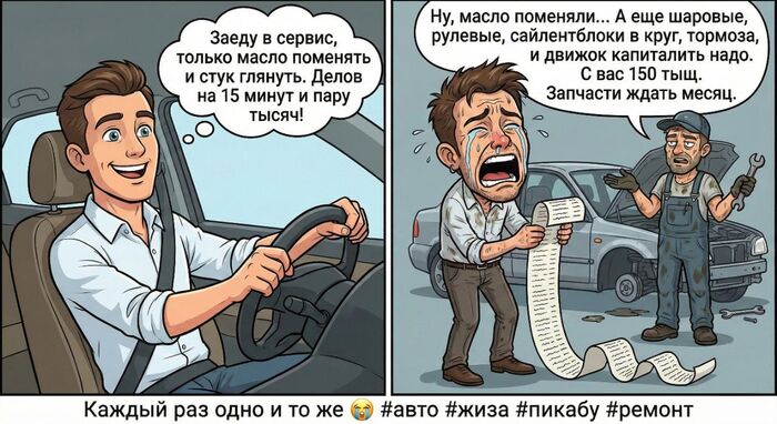 Потом знакомый говорит , а ты подъедь к автовокзалу, там СТО от Лифтремонта. Подъезжаю, оставил машину, через некоторое время звонит мастер, все, забирайте , сделал. С вас 10 баксов.