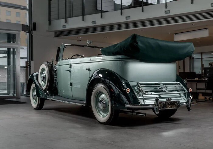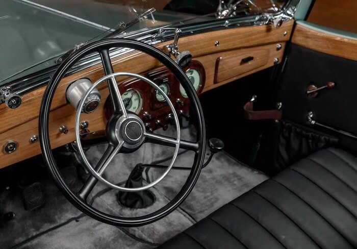 Этот редкий 7-местный phaeton с мягкой крышей, деревом и дорогой отделкой — автомобиль для представителей зажиточного класса конца 1930-х.
