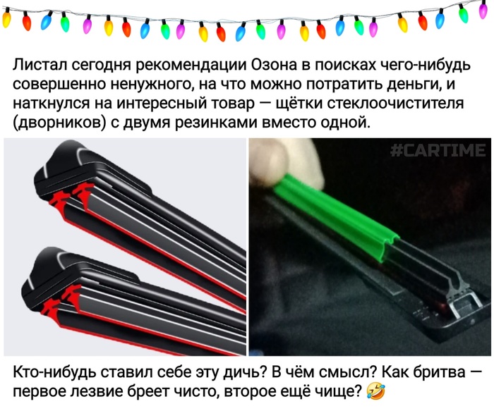 Сейчас по радио услышал рекомендации для автолюбителей в связи с приближающимися холодами или снегопадом или что там опять в центре творится, одно из них было поставить зимние щётки стеклоочистителей 🤔 А они что, ещё зимние бывают ? Какие-то особенные щётки на зиму ??? А почему их в магазинах не продают ? 🤔