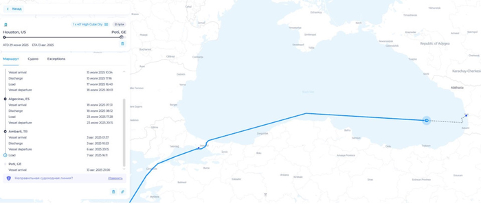 Дальше погрузка, тоже все оперативно, отплытие 29 июня (спустя 3 недели после покупки) и прибытие 4 августа уже в Грузию!