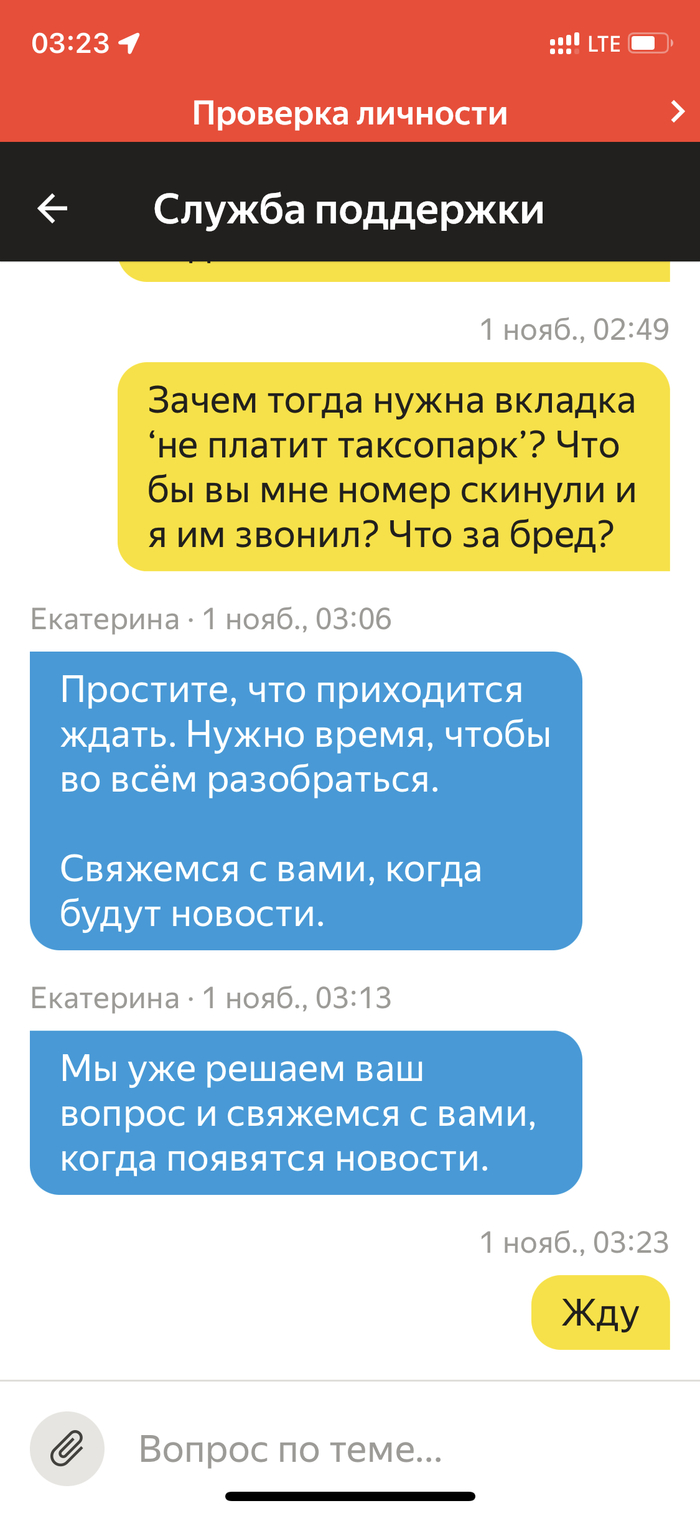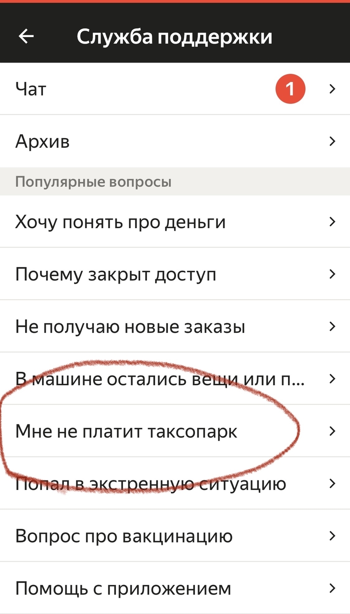 Ничего не осталось как написать в поддержку Яндекс.Про… ведь там вкладка есть… «не платит таксопарк, что делать» ниже креплю диалог…