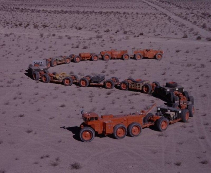 В конце 50-х годов Холодная война между СССР и США была в самом разгаре. Стороны уже вовсю фехтовали своими прокси во Вьетнаме, советский ученые заканчивали работу над термоядерной «Царь-бомбой», а в Пентагоне всерьез обдумывали последствия массированного ядерного удара, которые evil pinky commies вероятно скоро нанесут по Соединенным штатам. В частности вызывало опасение, что неизбежное массированное разрушение железных дорог и главных автомагистралей осложнит переброску по стране войск и военных грузов. Требовалась некая адекватная замена товарным железнодорожным составам. Вот тут американская военщина и вспомнила о крупнейшем в США производителе промышленной техники Роберте Гилморе ЛеТурно. И у него было что им предложить.
