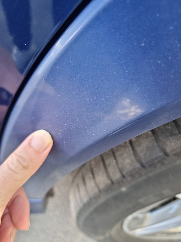 Жёстко зацарапана прям со всех сторон, такое ощущение что на ней часто по лесу ездили, и ветки все бочины зацарапали) Правильно машина же для оффроуда)
