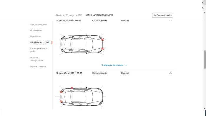 Да и ещё, "она ващпе не разу НЕ бит, НЕ крашень, мамой клянусь". Как вы уже поняли у авто было 2 ДТП, и вот они оба: